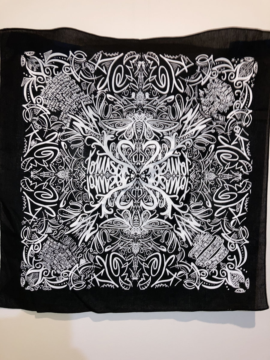 We had Scott from Black Collar Screen Printing print these bandanas up for us. Please don't trust them as masks to guard against COVID. I read an article that said that bandanas don't work great for that. But they do work great for wiping boogers, bike grease, or ketchup off your face. I have no idea how much to charge for shipping, so I'm guessing and making international really high just to avoid it If you live abroad and want one of these message us first please. We have three colors, let us know your favorite, but no promises. They have the lyrics from the PLACES recordings written on the corners.
